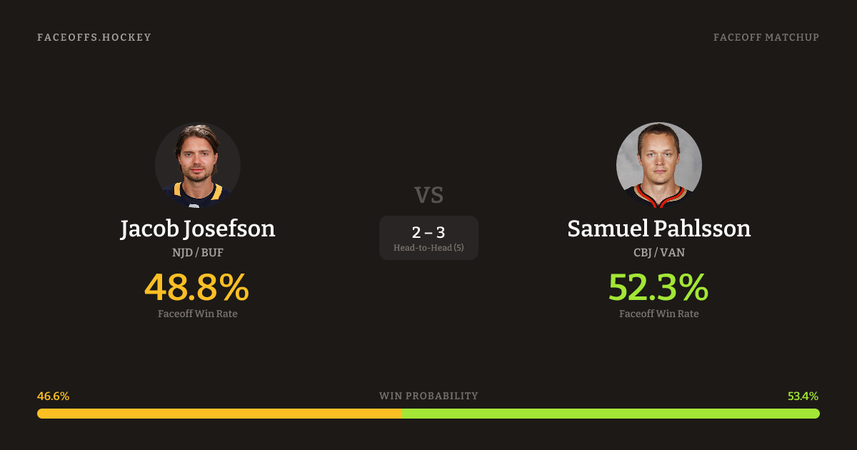 Jacob Josefson vs Samuel Pahlsson — Faceoff Head-to-Head
