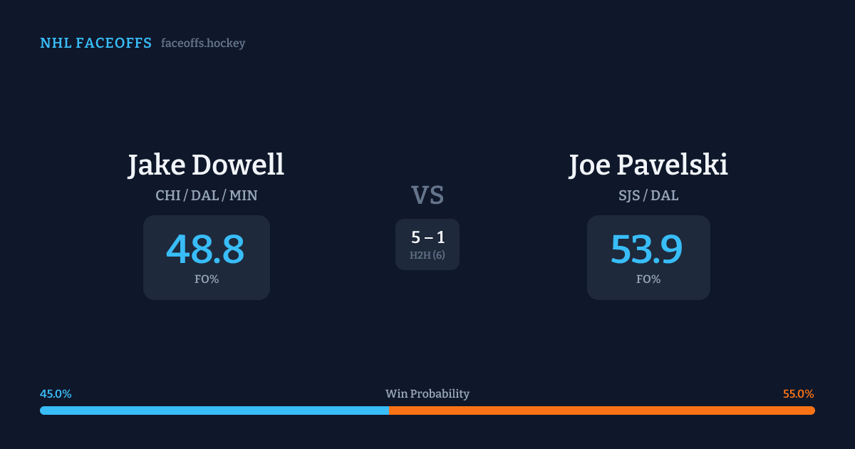 Jake Dowell vs Joe Pavelski — Faceoff Head-to-Head
