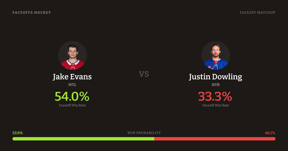Jake Evans vs Justin Dowling — Faceoff Head-to-Head