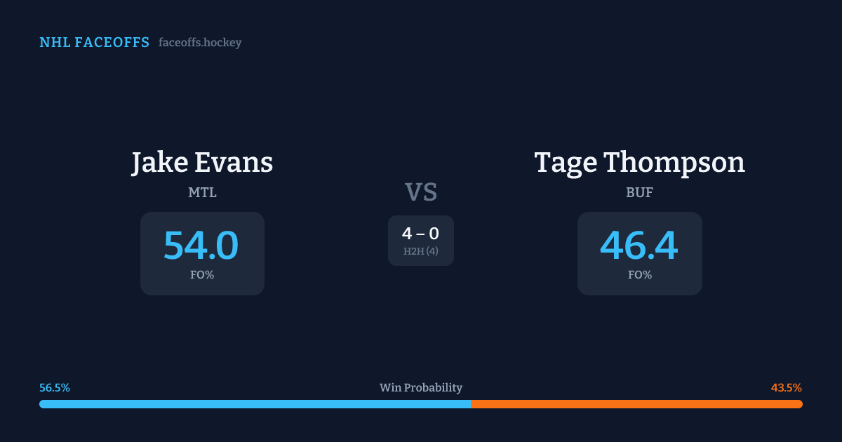 Jake Evans vs Tage Thompson — Faceoff Head-to-Head