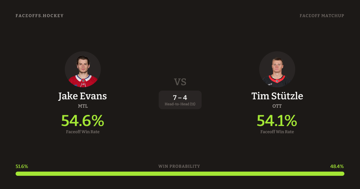 Jake Evans vs Tim Stützle — Faceoff Head-to-Head