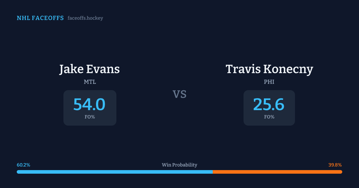 Jake Evans vs Travis Konecny — Faceoff Head-to-Head