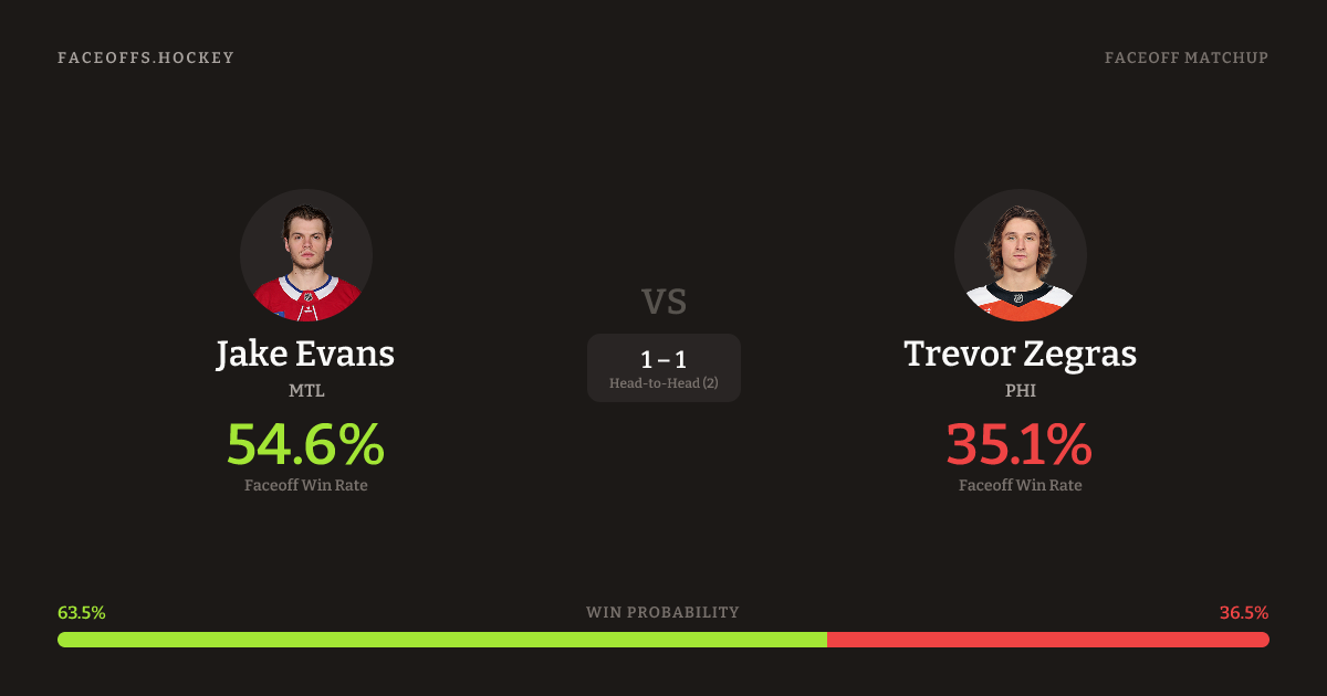 Jake Evans vs Trevor Zegras — Faceoff Head-to-Head