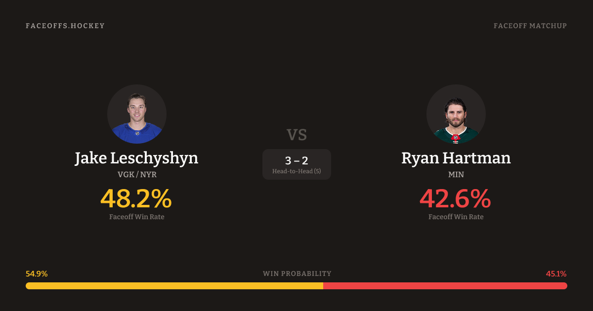 Jake Leschyshyn vs Ryan Hartman — Faceoff Head-to-Head