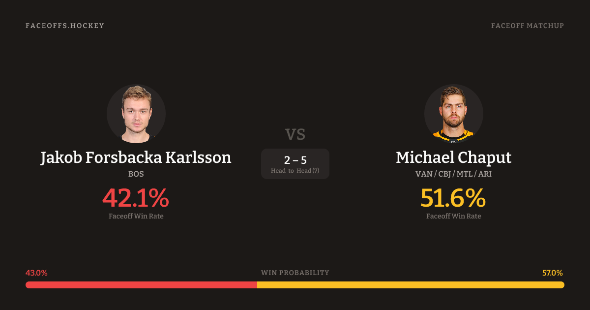 Jakob Forsbacka Karlsson vs Michael Chaput — Faceoff Head-to-Head