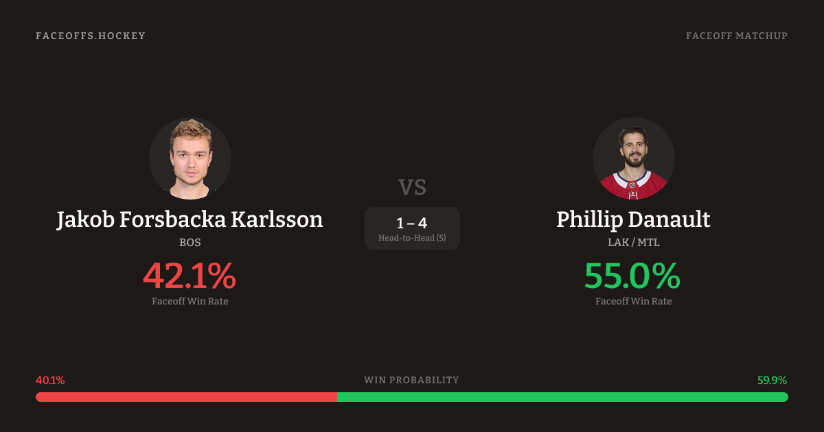 Jakob Forsbacka Karlsson vs Phillip Danault — Faceoff Head-to-Head
