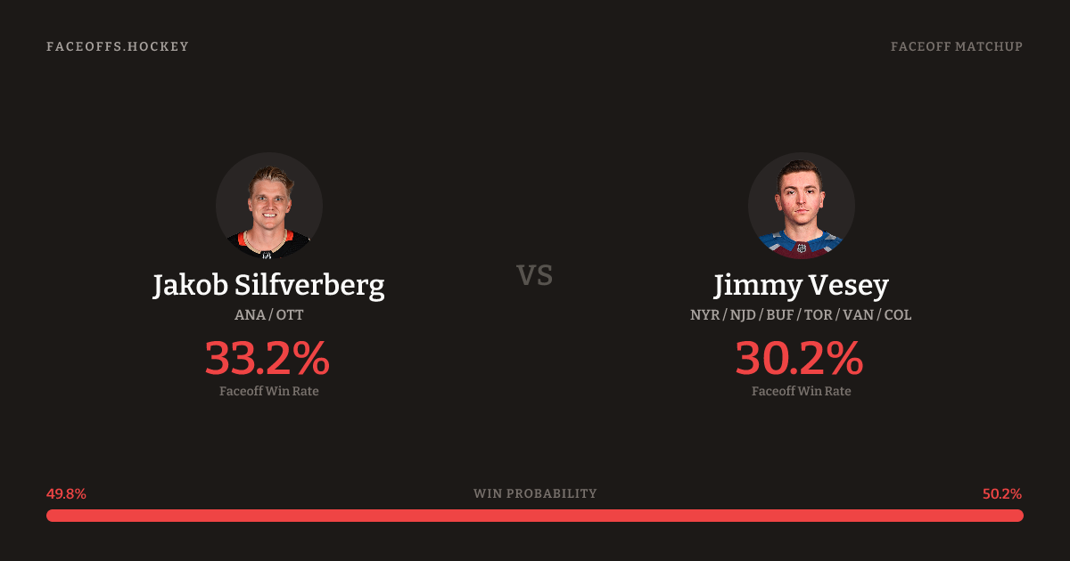 Jakob Silfverberg vs Jimmy Vesey — Faceoff Head-to-Head