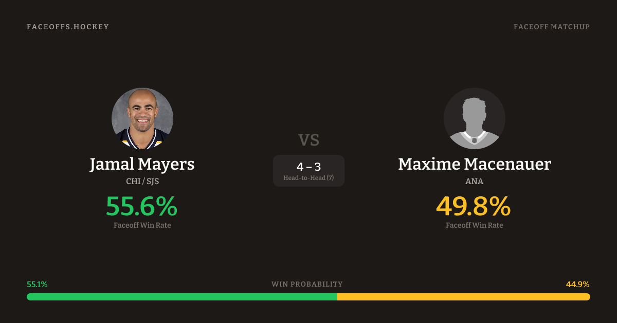 Jamal Mayers vs Maxime Macenauer — Faceoff Head-to-Head