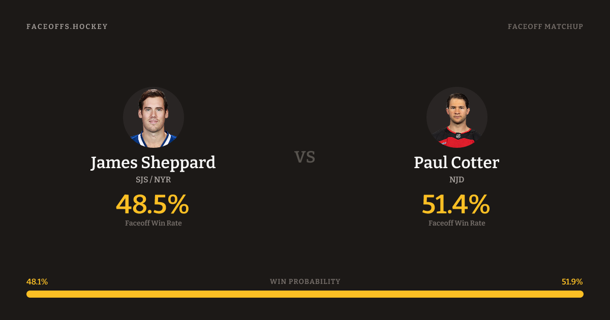 Cotter shoots left. Sheppard is 49.3% vs left-shot opponents (454).