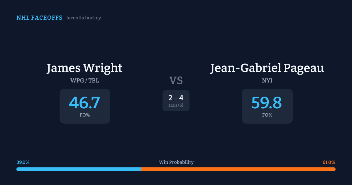 James Wright vs Jean-Gabriel Pageau — Faceoff Head-to-Head