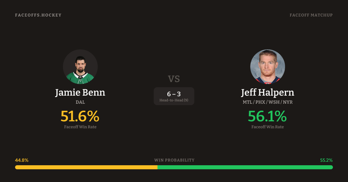Jamie Benn vs Jeff Halpern — Faceoff Head-to-Head