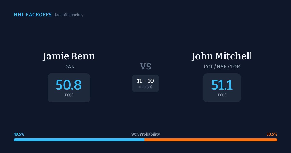 Jamie Benn vs John Mitchell — Faceoff Head-to-Head