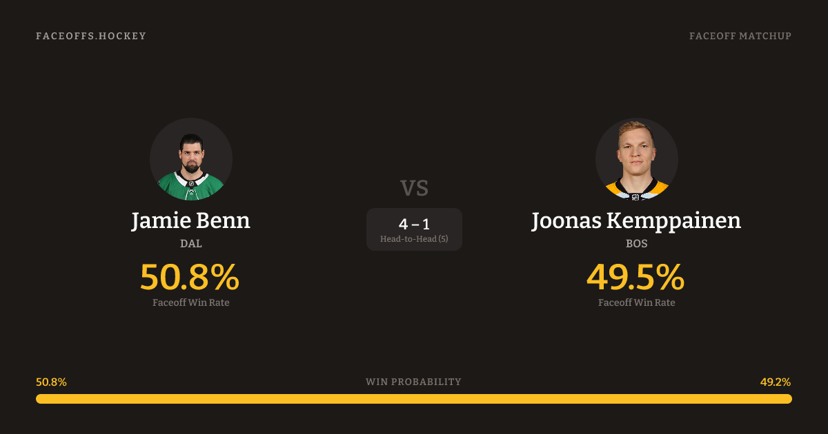 Jamie Benn vs Joonas Kemppainen — Faceoff Head-to-Head