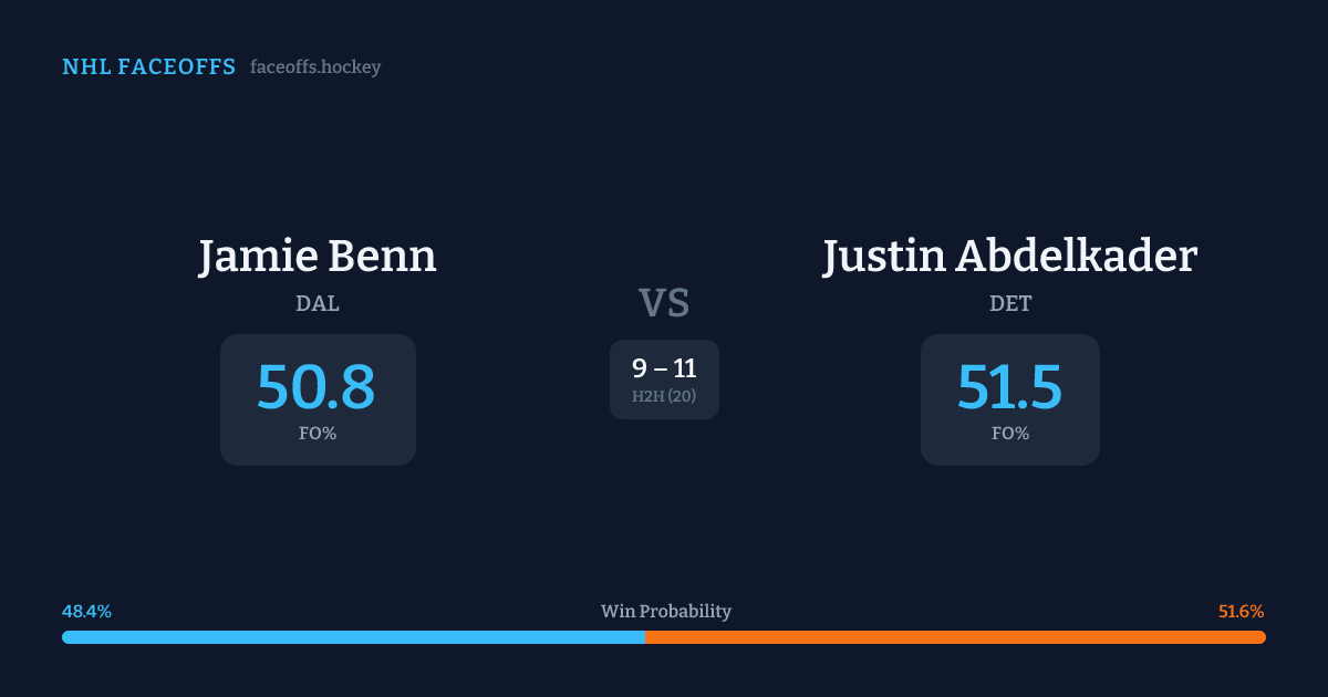 Jamie Benn vs Justin Abdelkader — Faceoff Head-to-Head