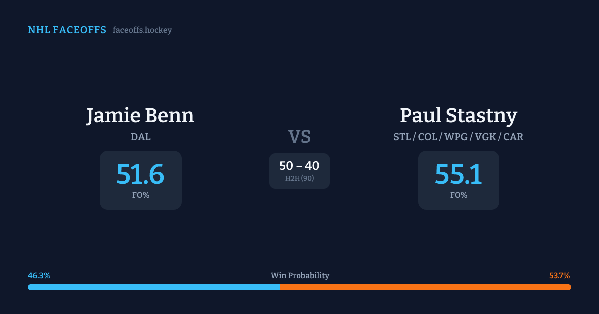 Jamie Benn vs Paul Stastny — Faceoff Head-to-Head