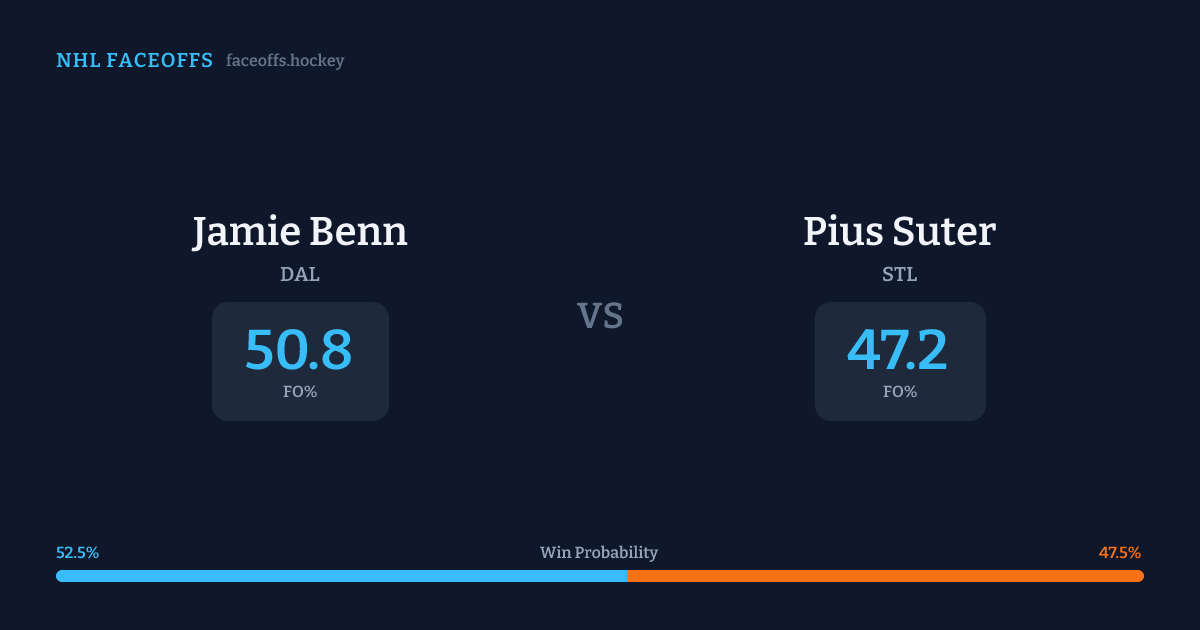 Jamie Benn vs Pius Suter — Faceoff Head-to-Head