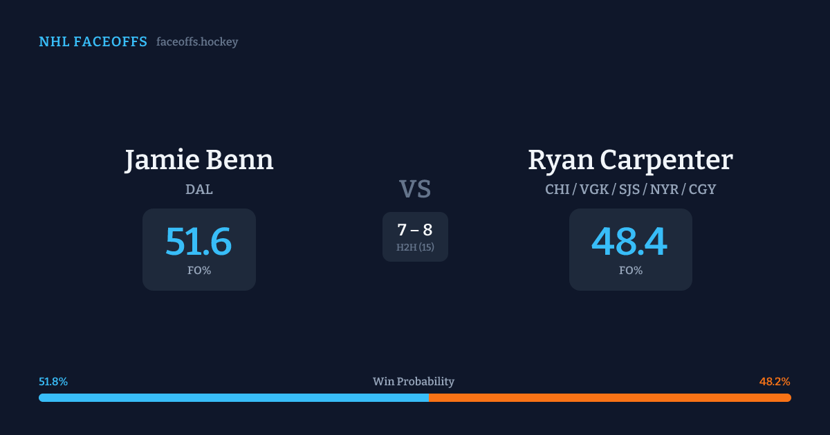 Jamie Benn vs Ryan Carpenter — Faceoff Head-to-Head