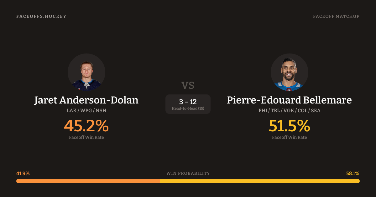 Jaret Anderson-Dolan vs Pierre-Edouard Bellemare — Faceoff Head-to-Head