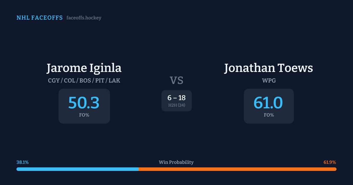 Jarome Iginla vs Jonathan Toews — Faceoff Head-to-Head