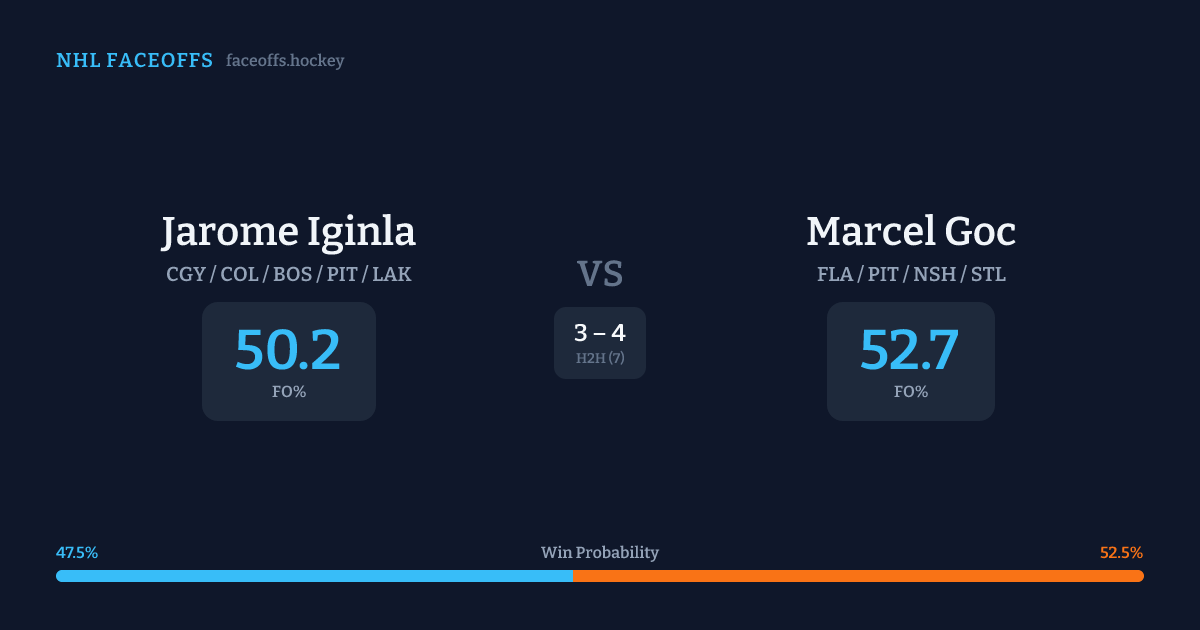 Jarome Iginla vs Marcel Goc — Faceoff Head-to-Head