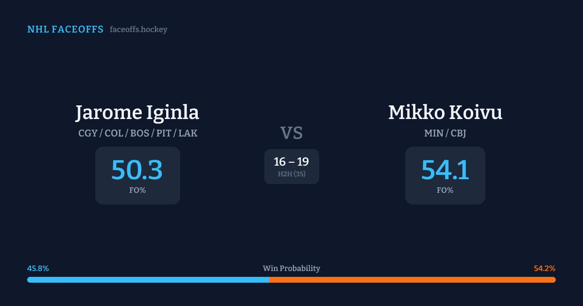 Jarome Iginla vs Mikko Koivu — Faceoff Head-to-Head