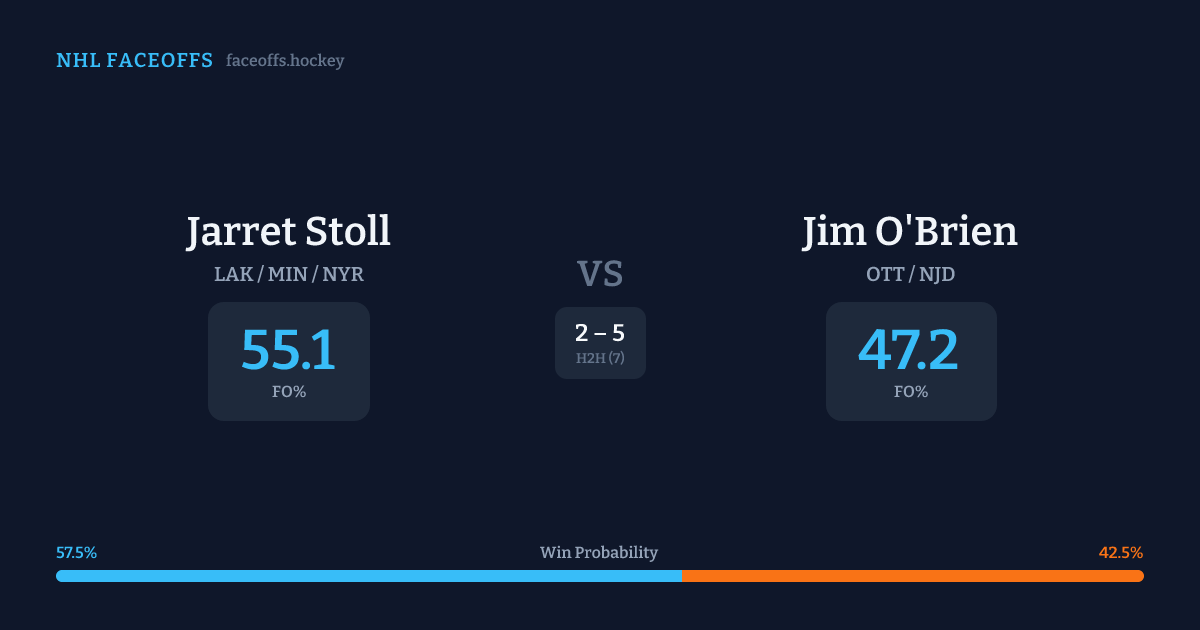 Jarret Stoll vs Jim O'Brien — Faceoff Head-to-Head