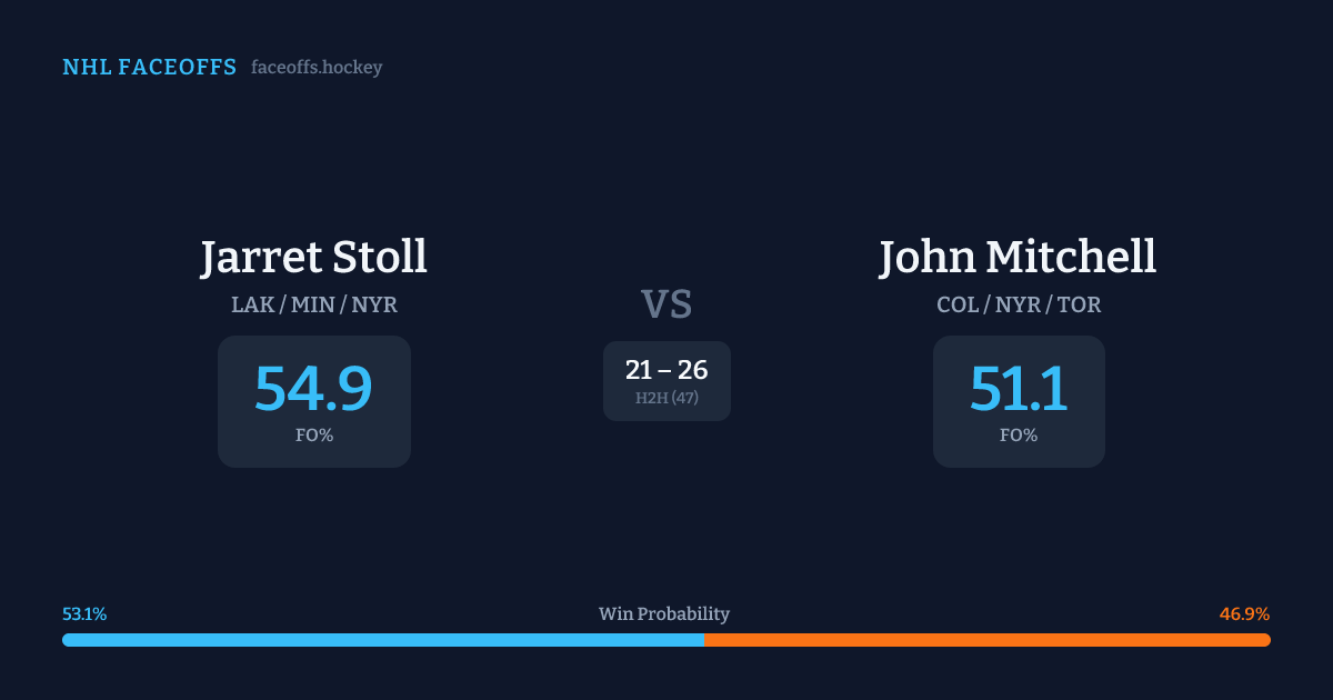 Jarret Stoll vs John Mitchell — Faceoff Head-to-Head