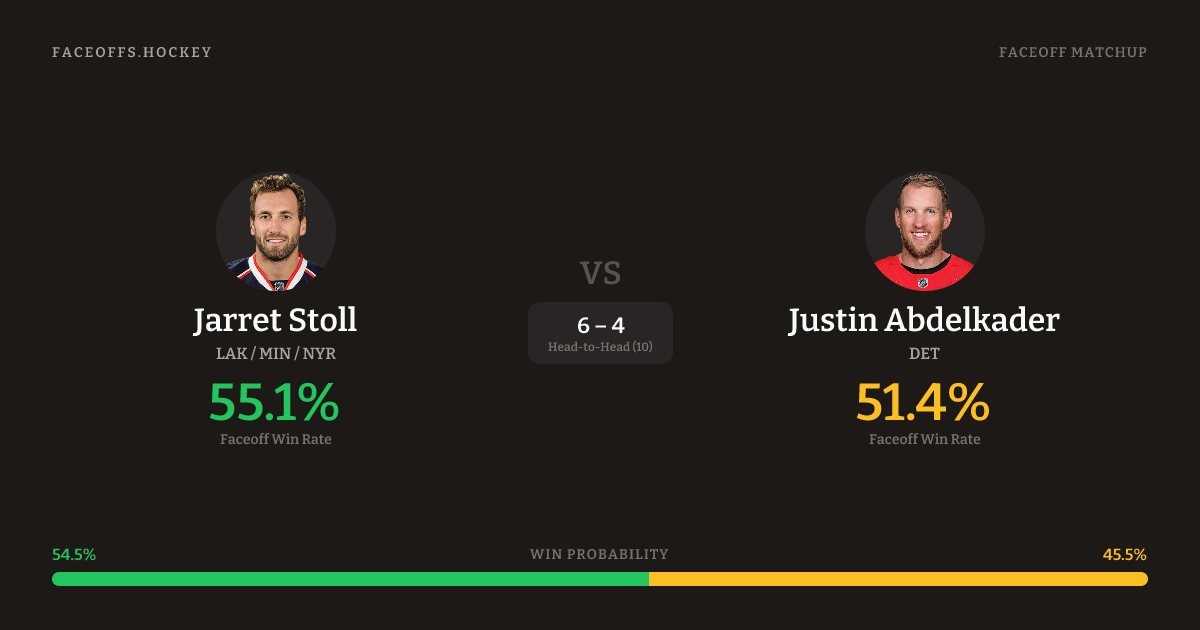 Jarret Stoll vs Justin Abdelkader — Faceoff Head-to-Head