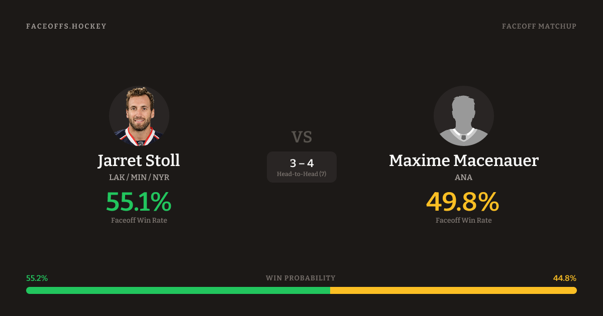 Jarret Stoll vs Maxime Macenauer — Faceoff Head-to-Head