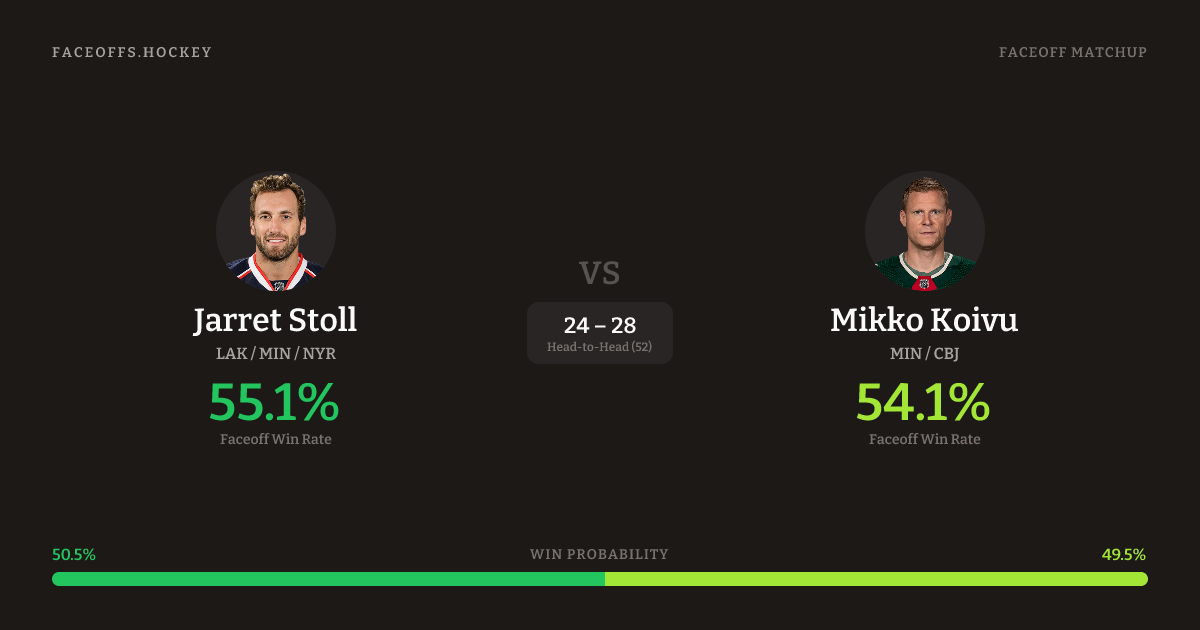 Jarret Stoll vs Mikko Koivu — Faceoff Head-to-Head