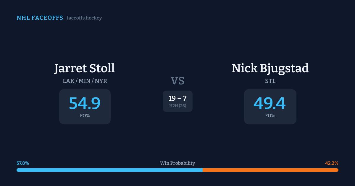 Jarret Stoll vs Nick Bjugstad — Faceoff Head-to-Head