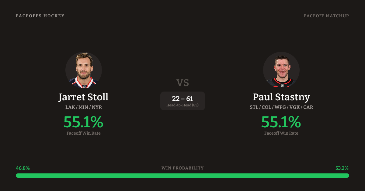 Jarret Stoll vs Paul Stastny — Faceoff Head-to-Head