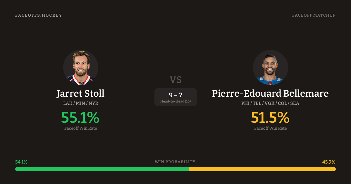 Jarret Stoll vs Pierre-Edouard Bellemare — Faceoff Head-to-Head