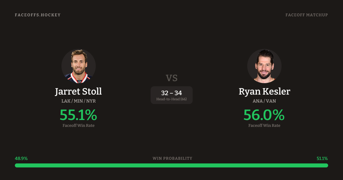 Jarret Stoll vs Ryan Kesler — Faceoff Head-to-Head