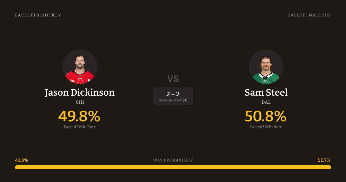 Jason Dickinson vs Sam Steel — Faceoff Head-to-Head
