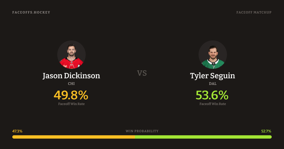 Jason Dickinson vs Tyler Seguin — Faceoff Head-to-Head