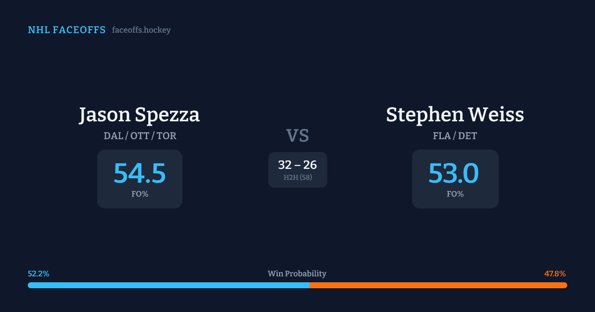 Jason Spezza vs Stephen Weiss — Faceoff Head-to-Head