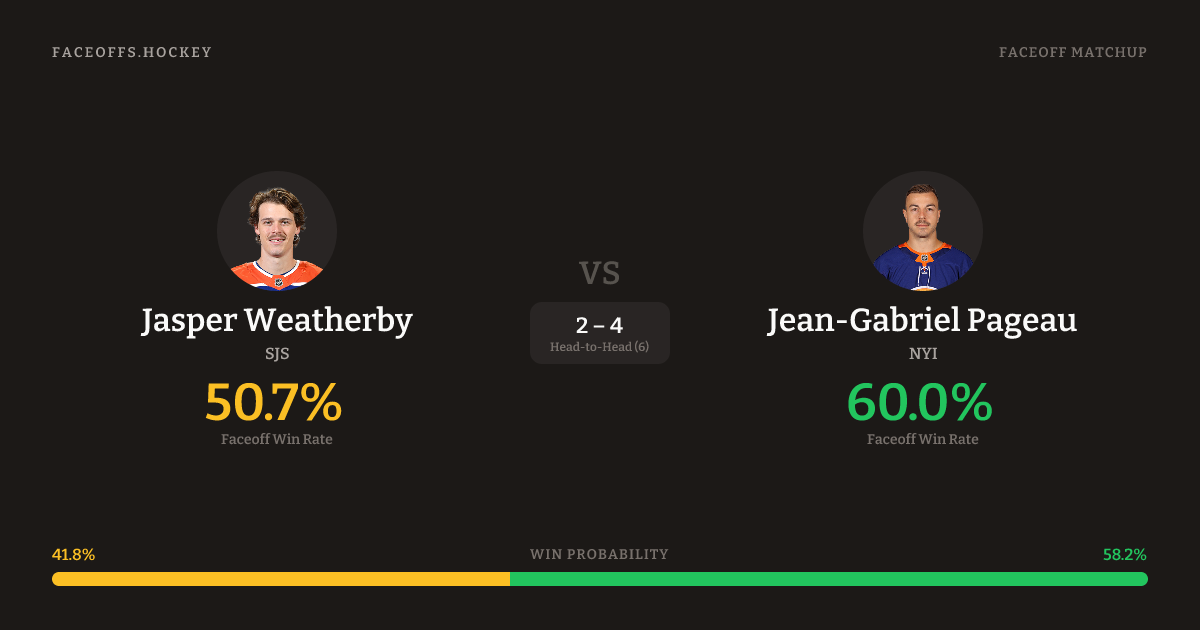 Jasper Weatherby vs Jean-Gabriel Pageau — Faceoff Head-to-Head
