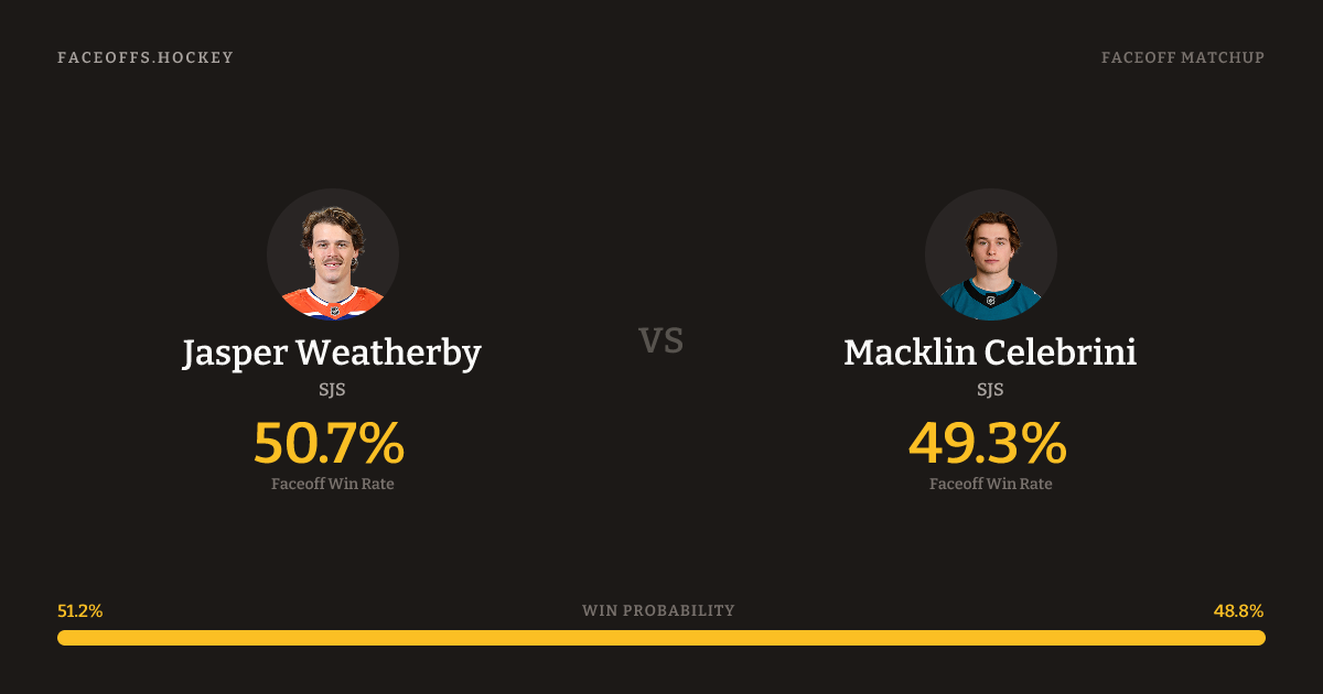 Jasper Weatherby vs Macklin Celebrini — Faceoff Head-to-Head