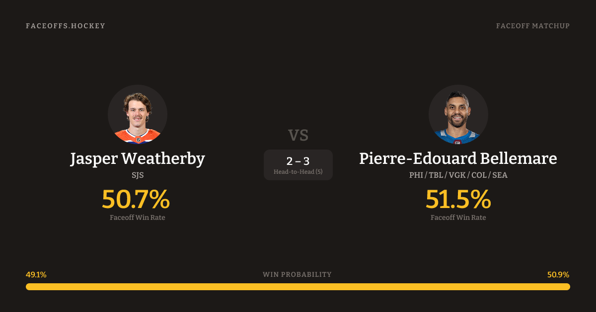 Jasper Weatherby vs Pierre-Edouard Bellemare — Faceoff Head-to-Head