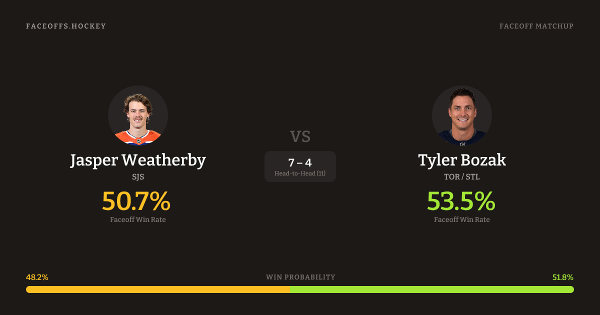 Jasper Weatherby vs Tyler Bozak — Faceoff Head-to-Head