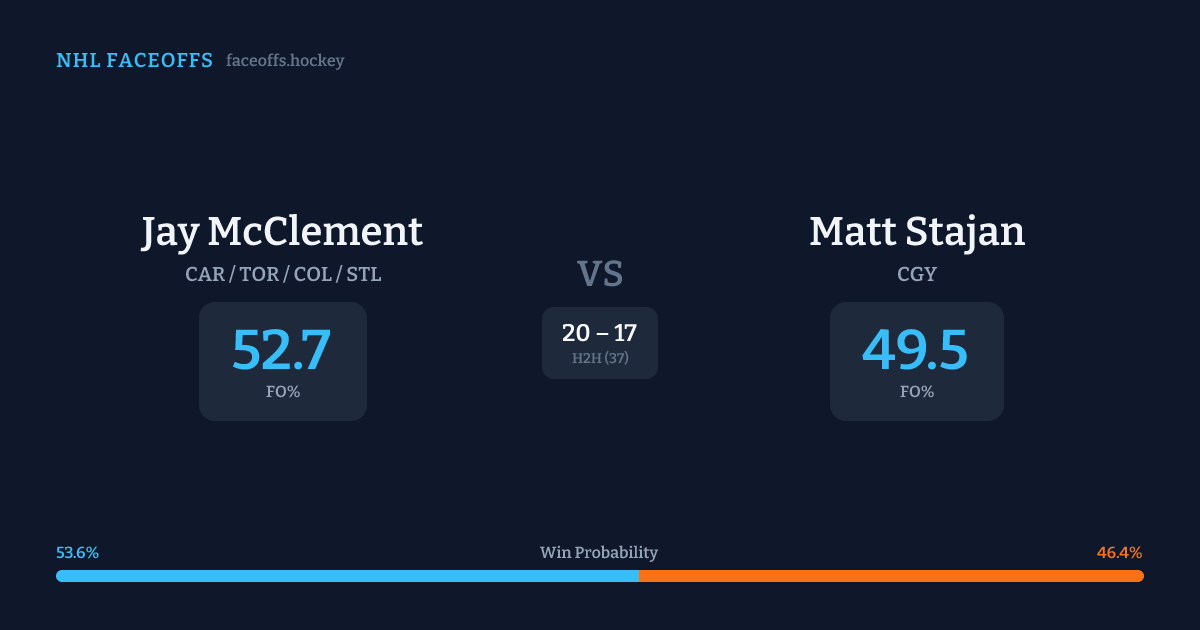 Jay McClement vs Matt Stajan — Faceoff Head-to-Head