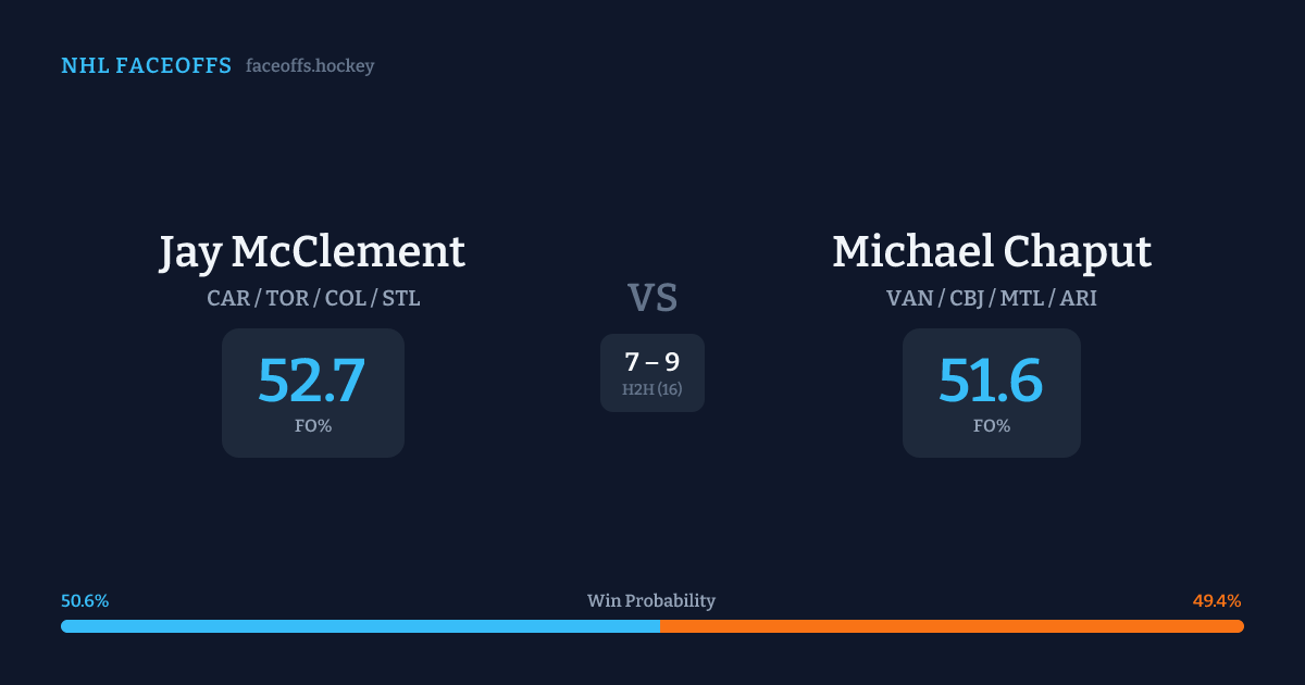 Jay McClement vs Michael Chaput — Faceoff Head-to-Head