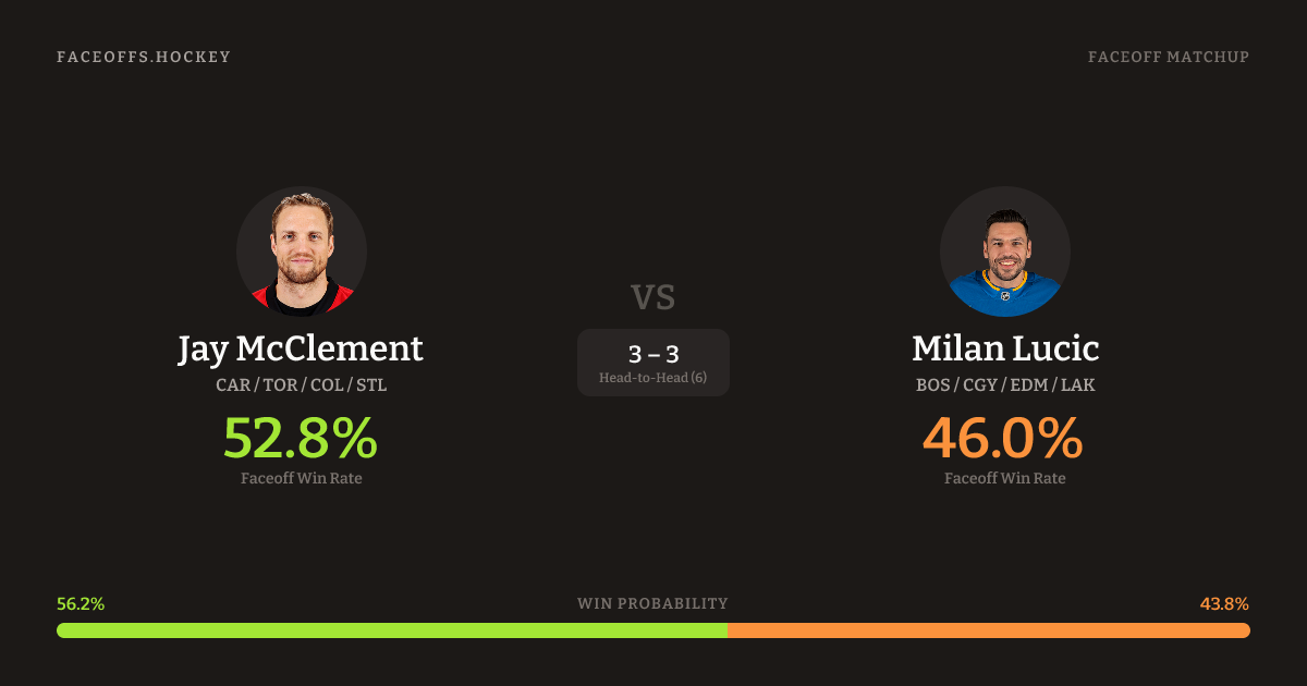 Jay McClement vs Milan Lucic — Faceoff Head-to-Head