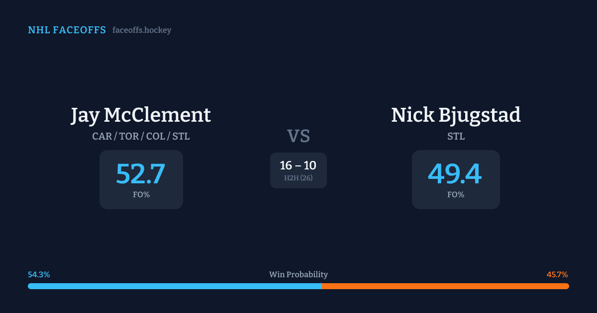 Jay McClement vs Nick Bjugstad — Faceoff Head-to-Head