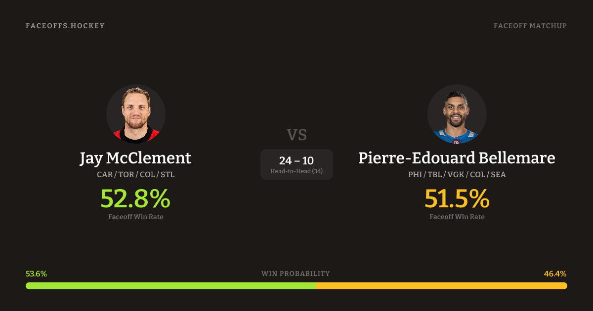 Jay McClement vs Pierre-Edouard Bellemare — Faceoff Head-to-Head