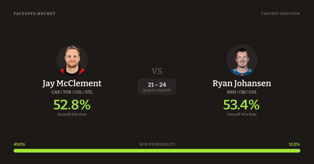 Jay McClement vs Ryan Johansen — Faceoff Head-to-Head
