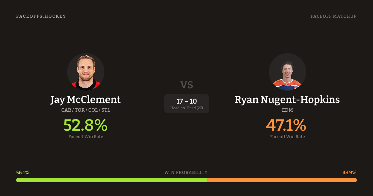 Jay McClement vs Ryan Nugent-Hopkins — Faceoff Head-to-Head