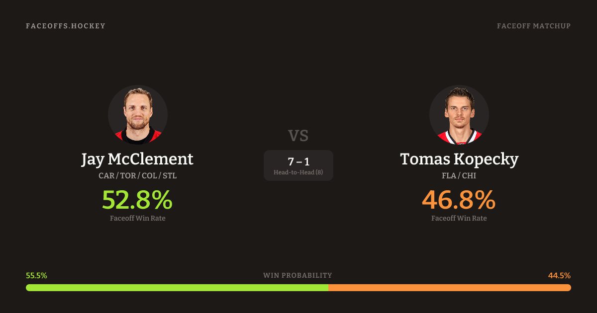 Jay McClement vs Tomas Kopecky — Faceoff Head-to-Head