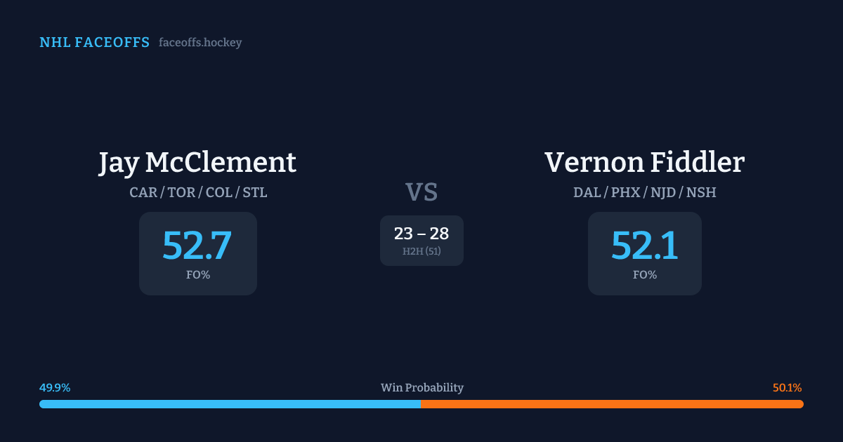 Jay McClement vs Vernon Fiddler — Faceoff Head-to-Head